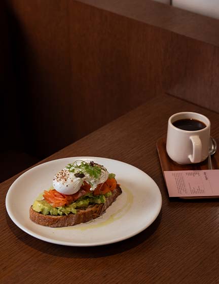Maldon-cured smoked salmon, poached eggs, avocado, sourdough toast, herb and lemon oil