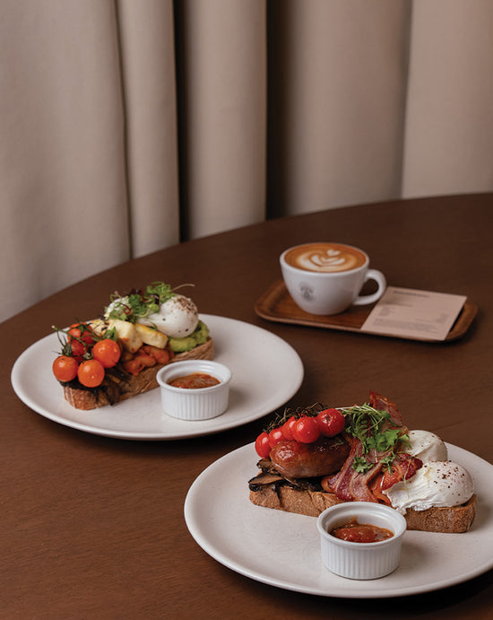Halloumi, poached eggs, avocado, tomato, mushrooms, sourdough and House relish.